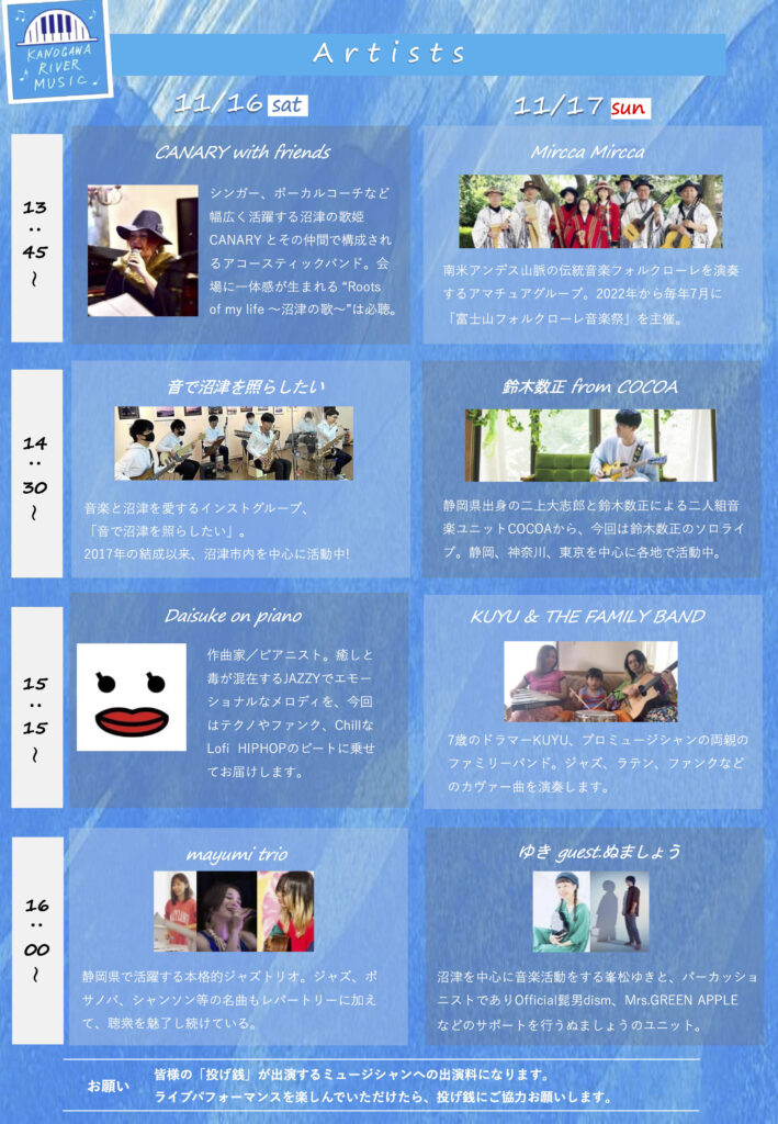 当日は投げ銭システムがございます。もしパフォーマンスにお楽しみいただけたらぜひ投げ銭のご協力をよろしくお願いいたします。